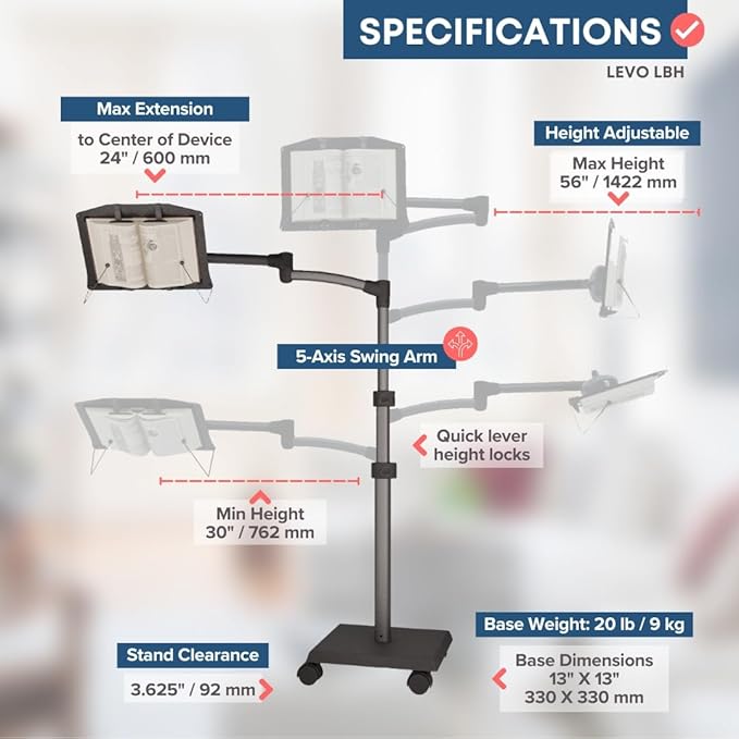 - INDISPENSABLE: LEVO stands out as the ultimate companion for students, professionals, and avid readers of all ages. Seamlessly accommodating reference materials or textbooks, it enhances productivity by freeing your hands to take notes or engage in phone conversations. The inclusivity extends to children, making it a favored reading aid for their books. Whether you're studying, working, or enjoying leisurely reading, LEVO ensures a hands-free, comfortable, and efficient experience."