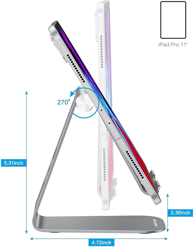 - Multi-Angle: This adjustable tablet stand can hold your tablet horizontally or vertically and meet your demands of multiple viewing angles when using the tablet. If you use this tablet holder for iPad Pro 12.9, we suggest that you set it horizontally or find a suitable angle to make it not wobble.