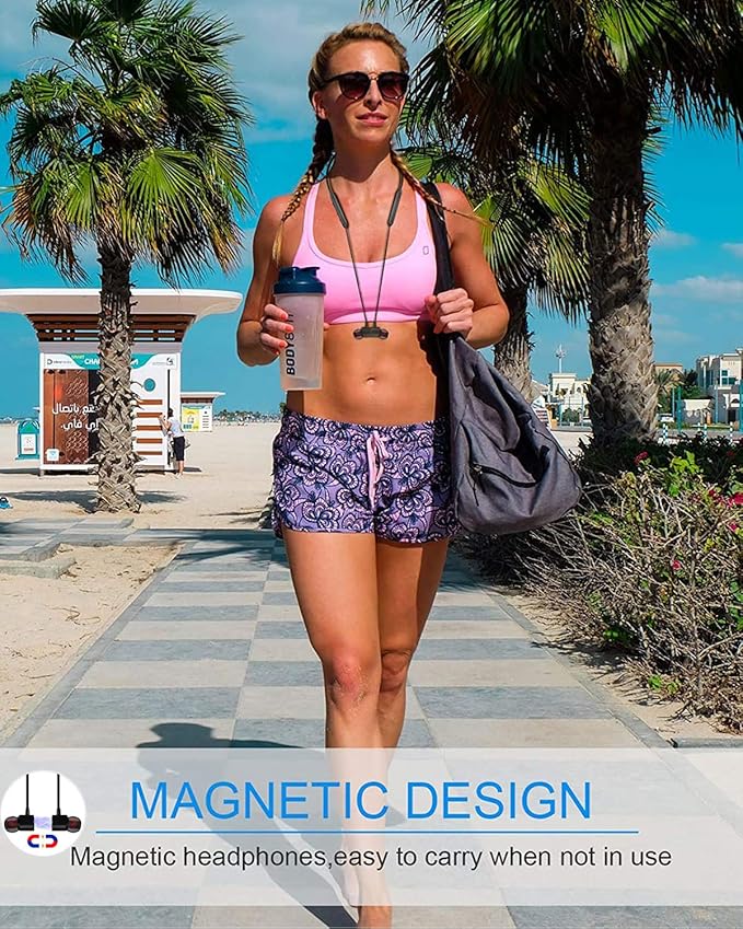 - [IPX7 Waterproof] The earbuds are rated IPX7. Built-in nano-coating can prevent sweat and rain. You can be free to enjoy jogging, cycling, driving, hiking, bodybuilding, and other city sports. The magnetic wireless earbuds conveniently clasp together, easy to take.
