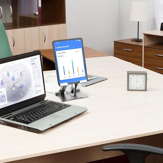 - ✅【PLEASE NOTE】❤️*The two supports of stand are made of metal plate hinge inside with plastic outer shell, the rest of them are aluminium。❤️*For solid support, it may be a little hard to adjust the angle (Excellent stability).❤️*Under different lighting conditions, the product will have a certain color difference.