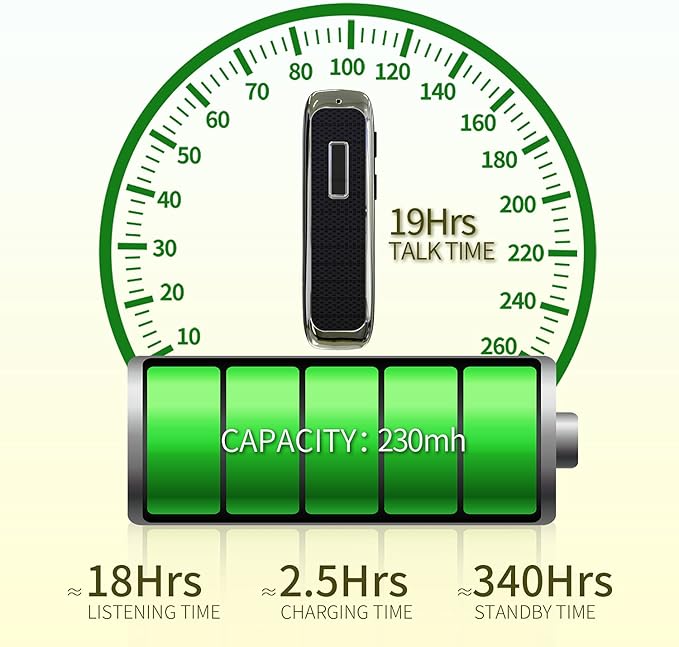 - Long Battery Life: High-performance battery provides up to 18 hours of music time,19 hours of talk time or 14 days of standby from a single charge.