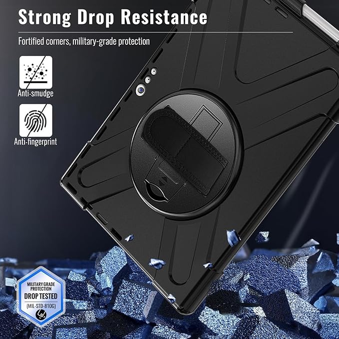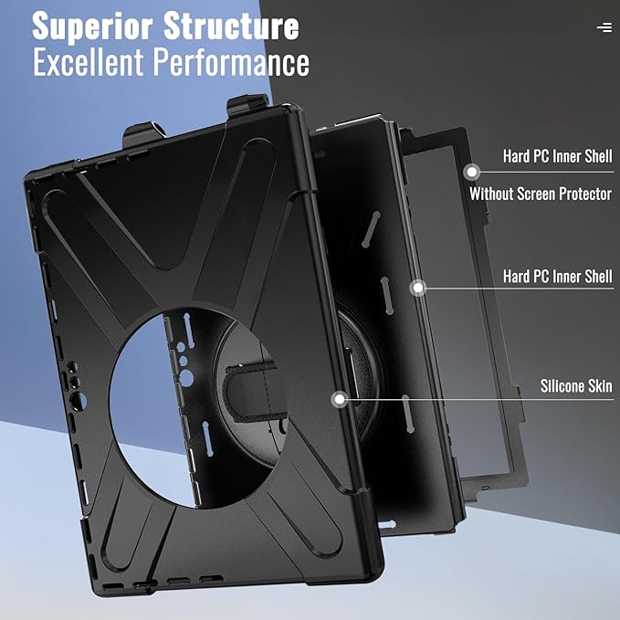 DreamerX for Microsoft Surface Pro 7+ Plus/Pro 7/6/5/4 12.3" Case, Heavy Duty Rugged Full Body Drop Protective Silicone Kids Cover w/Rotating Stand Hand Strap Pen Holder Carrying Shoulder Strap Black