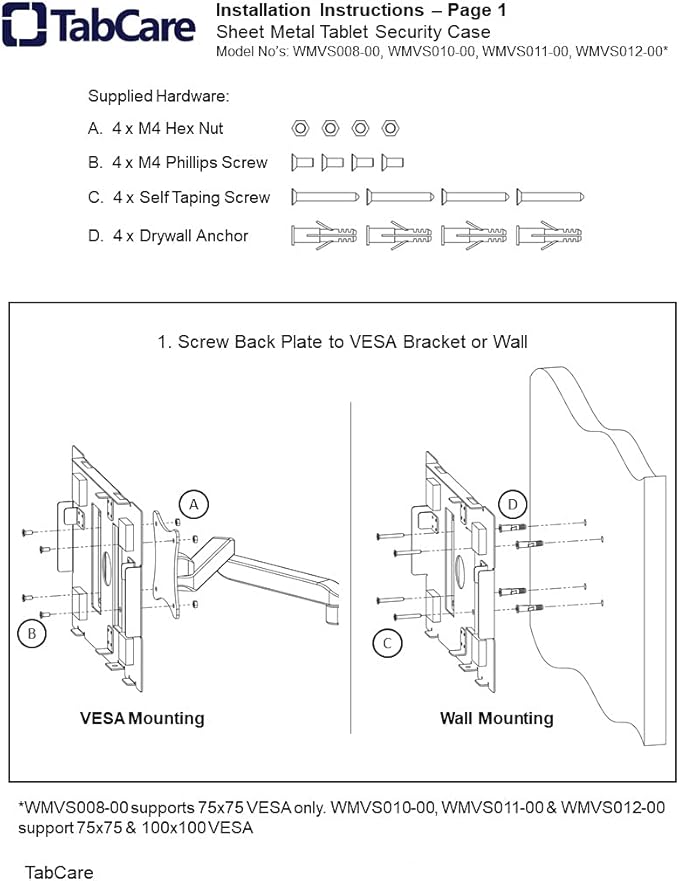 - VESA 75x75mm 100x100mm Standard, Compatible with Samsung Galaxy TAB A 9.7