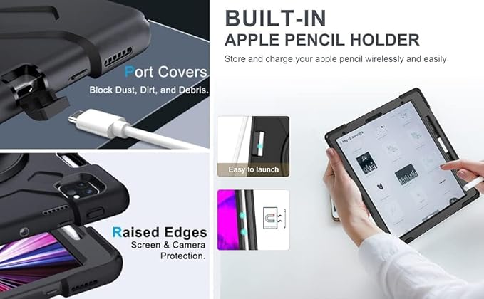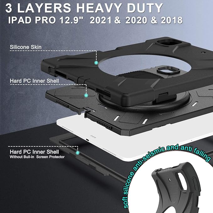 - ♫ Compatibility: Designed for iPad Air 13 Inch (M3) 2025 (Model: A3268/A3269/A3271), iPad Air 13 Inch (M2) 6th Generation 2024 (A2898/A2899/A2900), iPad Pro 12.9 2022 6th Gen (A2436/ A2764/A2437/A2766), iPad Pro 12.9" 2021 5th Gen (A2378/A2379/A2461/A2462), iPad Pro 12.9 Inch 2020 4th Gen (A2229/A2069/A2032/A2233), iPad Pro 12.9 Inch 3rd Gen 2018 (A1876/A2014/A1895/A1983). Customized cutouts give open access to volume, hold buttons, charging port, headphone port, speakers, and front / rear camera without removing the case. [NO built-in screen protector]