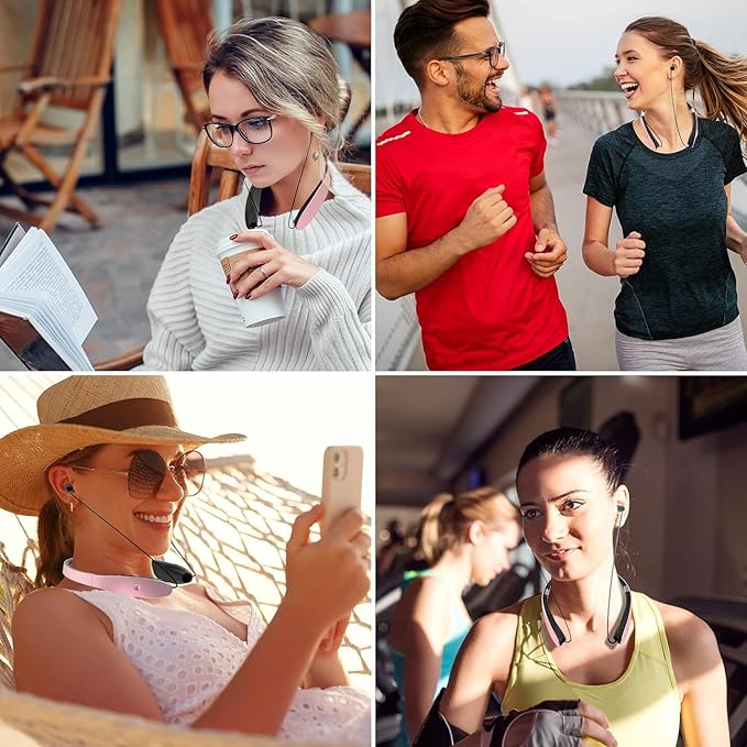 - [Ergonomic neckband & Retractable Earbuds]: Ergonomic neckband design allow you to wear the headphones on your neck more comfortably and decrease the pressure of your ears. The Auto retractable earbuds allows you to pull the retractable earbud wire to the length you want and press the retract button can store the earbuds wire automatically.