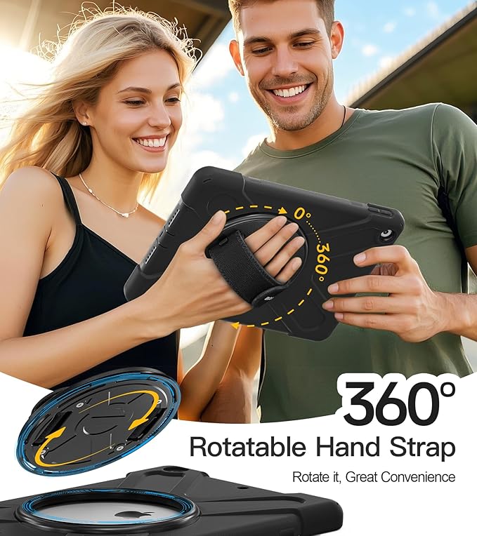 - 360 Rotating Bracket and Hand Strap: Located on the back of the heavy-duty iPad 10.2 inch case, the built-in kickstand and adjustable handle hand strap provide added flexibility and convenience when using the tablet at work, at school, or on the go, making it ideal for students, teachers, engineers, cashiers, servers, and more.