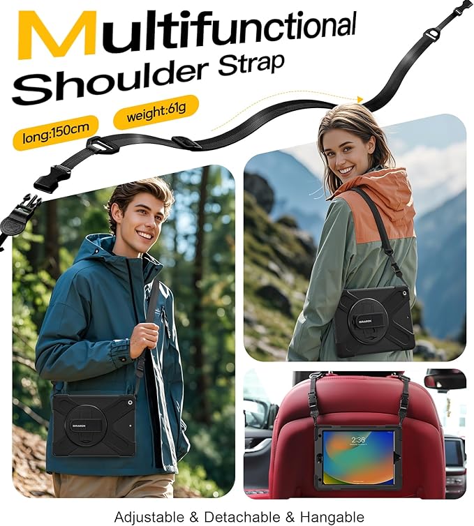 - Adjustable & Detachable Carrying Strap:iPad 8th Gen tablet case with Portable Shoulder Strap allows to carry your iPad 9th Gen in landscape/portrait mode securely in outdoors or hang your iPad in kitchen,bedroom,car seat for convenient usage.