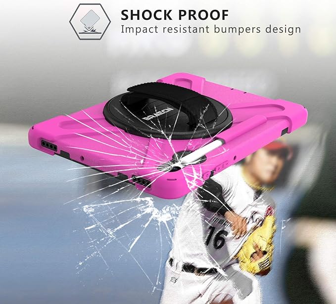 - 360 Rotating Stand & Hand Strap: Located on the back of Galaxy Tab S6 heavy duty cases,built-in 360 degree rotating kickstand and adjustable handle hand strap provides a more flexible and convenient way to use your tablet during work, study or journey, ideal for students,teachers,engineers,cashiers and waiters,etc.