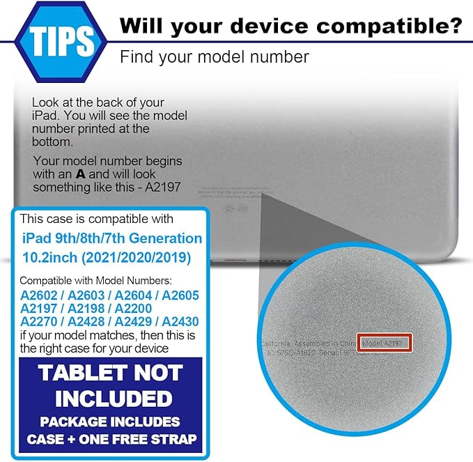 - Compatibility: Exclusively designed Shockproof Case for iPad 9th/ 8th/ 7th Generation 10.2 inch (Model includes: A2602 A2603 A2604 A2605 / A2197 A2198 A2200 / A2270 A2428 A2429 A2430) 2021/2020/2019 Released. NOT fits for other Generations iPad. Please confirm the product before purchase