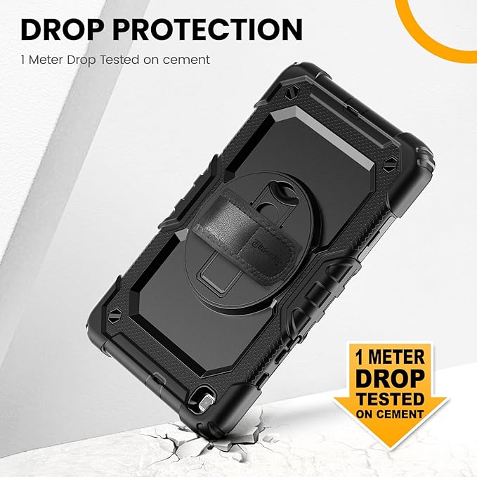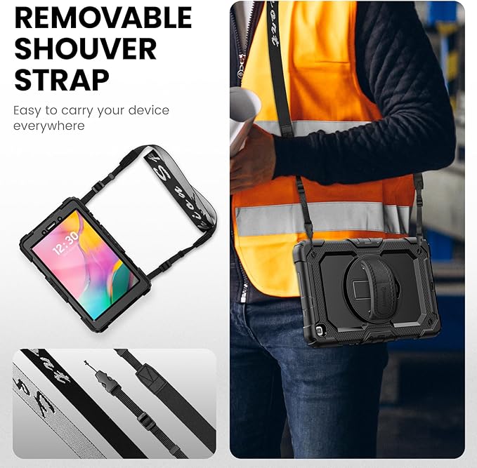 Timecity Case for Samsung Galaxy Tab A 8.0 2019 SM-T290/ T295/ T297, Full-Body Protective Case with Screen Protector, Swivel Stand/Handle Shoulder Strap Case for Kids Students, Black