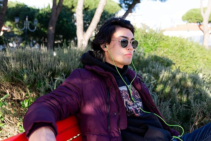 LUDOS Ultra Wired Earbuds in-Ear Headphones, 5 Years Warranty, Earphones with Microphone, Noise Isolating Ear Buds, Memory Foam for iPhone, Samsung, School Students, Kids, Women, Small Ears - Green