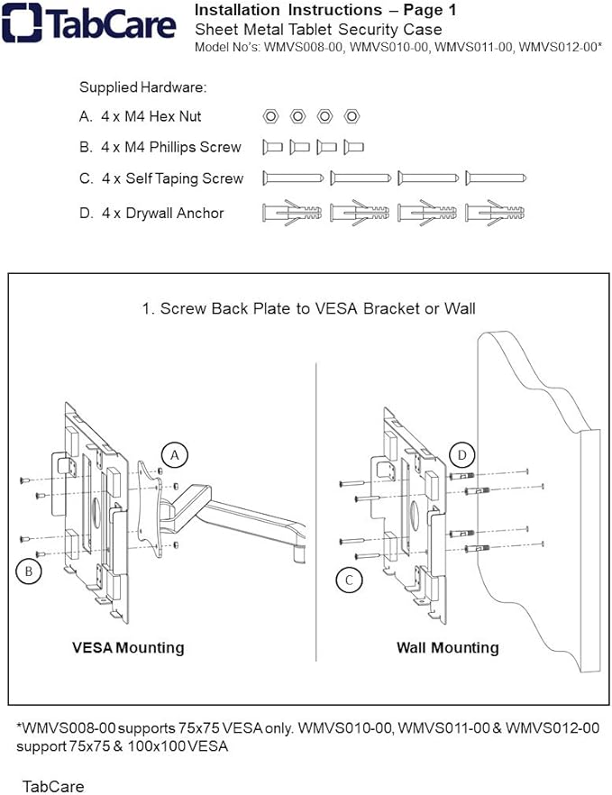 TABcare Locking Anti-Theft Security Metal Case for Microsoft Surface Go 1/2/3/4 Tablet Supports VESA, Wall Mount (Surface GO, Black)