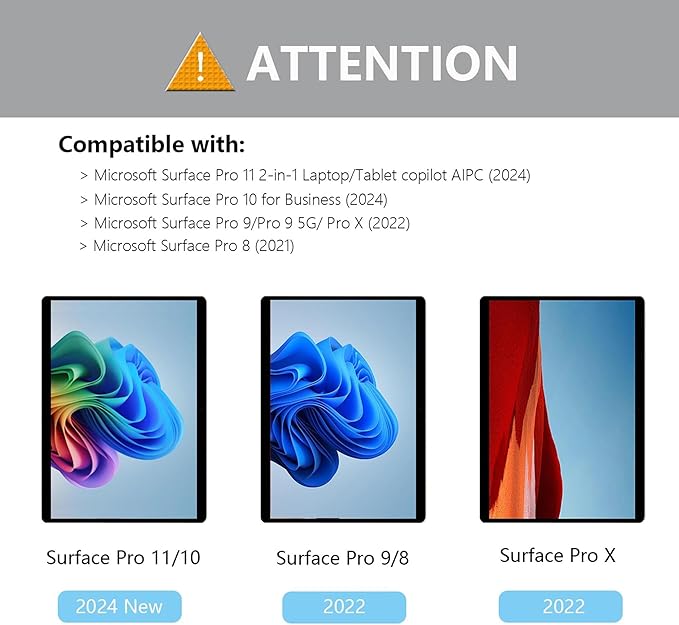 - 【Tailored Fit for Surface Pro 13-Inch】 Designed to match Surface Pro 11, 10, 9, 8, and X (13-inch), including Copilot+ PC 2024. Check Settings > About > Model Information before ordering.