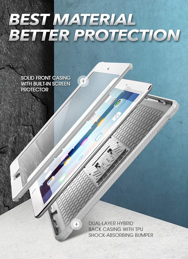 SUPCASE for iPad 9th Generation Case with Screen Protector (Unicorn Beetle Pro), [Built-in Stand] Heavy Duty Rugged Protective Case for iPad 10.2 9th / 8th / 7th Generation (2021/2020/2019), White