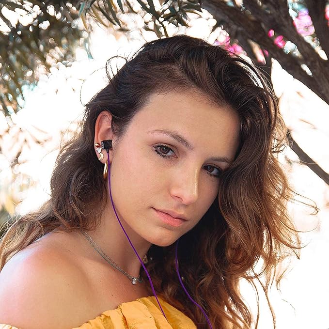LUDOS Ultra Wired Earbuds in-Ear Headphones, 5 Years Warranty, Earphones with Microphone, Noise Isolating Ear Buds, Memory Foam for iPhone, Samsung, School Students, Kids, Women, Small Ears - Purple