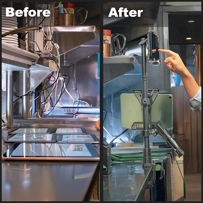 - SPACE-SAVING ORGANIZATION — Keeps multiple tablets neatly organized and off counters, freeing up valuable workspace in busy restaurants, kiosks, retail displays, and homes. This mount creates a clean, accessible layout that enhances efficiency and reduces clutter.