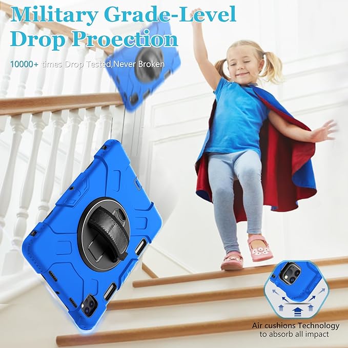 - MATERIAL COMPOSITION: This iPad Pro 11 inch case has a built-in screen protector. The inner cover and frame are Made from Hard PC and outer layer is Silicone. Our triple defense system has passed the Military Grade Drop Test [MIL-STD 810G-516.6] and can withstand shocks and drops from up to 15 feet, 10,000 times. These shock-absorbent layers incorporate Air Cushion Technology to effectively protect your iPad from accidental drops, bumps, and scratches