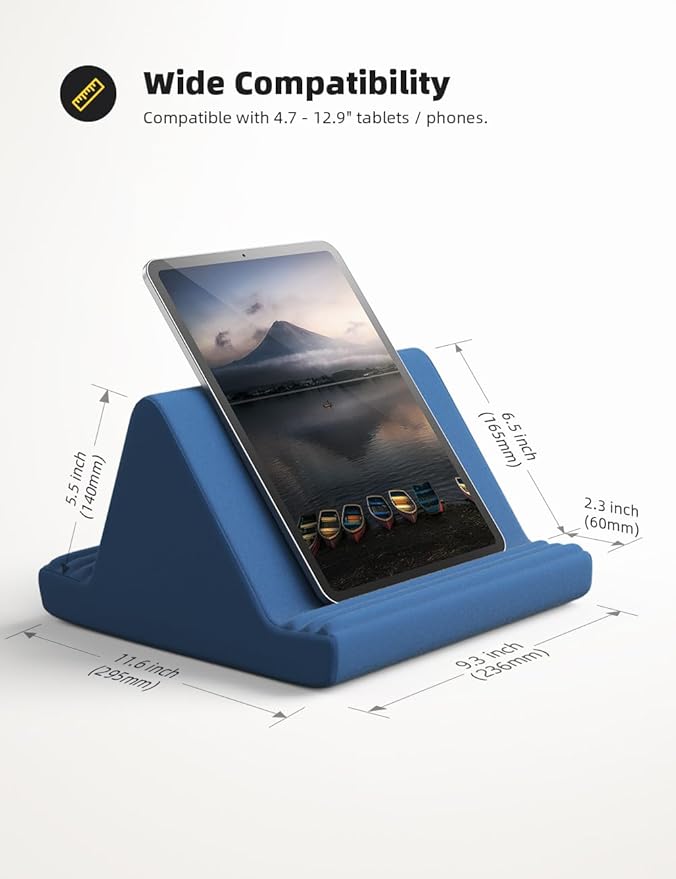 - 【 COMPATIBILITY 】 Universal tablet stand pillow is suitable for tablets between 4.7 and 13 inches, like new 2024 iPad Pro 13 inch/ 2022/ 2021 iPad Pro 11/ 12.9, 2024 iPad Air, iPad 10.9, iPad Air 6/ 5, iPad Mini 6/ 5/ 4/ 3, iPad Pro 9.7/ 10.5, iPad 5th/ 6th/ 7th/ 8th/ 9th/ 10th generation, Kindle Fire HD 7 8 10, E-reader, Huawei, iPhone 16 Pro Max, iPhone 15 Pro Max, 14 13 12 11 Pro Max, iPhone Xs Max, Surface Pro, Galaxy Tab S8, S7, A8, A7, Switch.