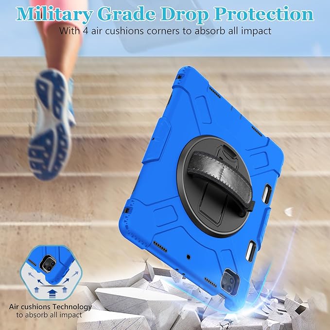 Case for iPad Pro 12.9 2022/2021/ 2020/2018: Cover for iPad Pro 12.9 6th/ 5th/ 4th/ 3rd Generation with Screen Protector- Stand- Pencil Holder- Handle- Shoulder Strap Blue