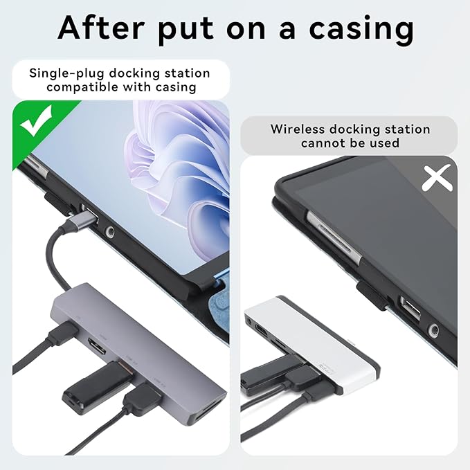 - Precise cutouts enable users to have full access to all features (Cameras, Speaker, Ports and Buttons). Note: this surface go case can only be used with a single-port docking station, not a dual-port docking station.