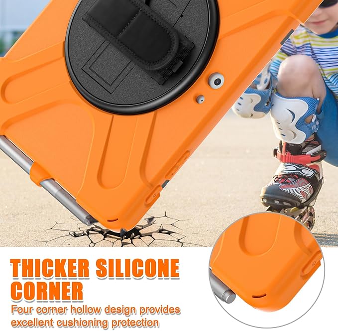 ZenRich Rugged Case for Surface Go with Pen Holder, Heavy Duty Shockproof Case with Stand, Hand Strap and Shoulder Belt - Orange