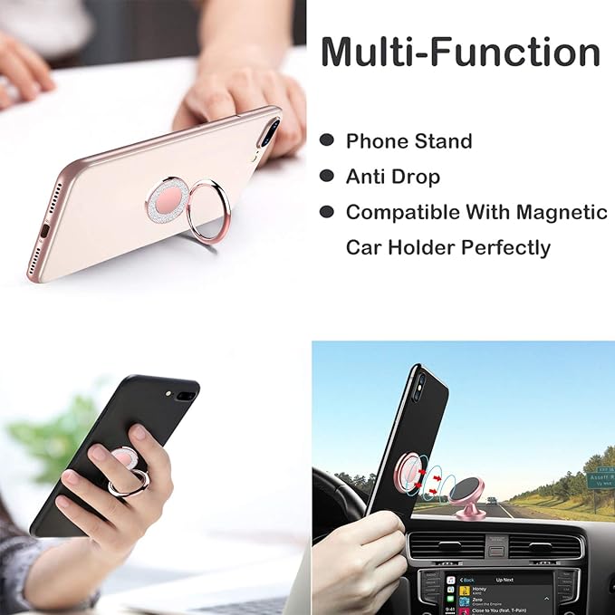 - Boasting an adjustable support angle, Pikabo Glitter phone ring holder ensures flexibility, as it can be conveniently rotated 360° and folded 180°, granting you the ability to find the best angle for your phone placement with ease.