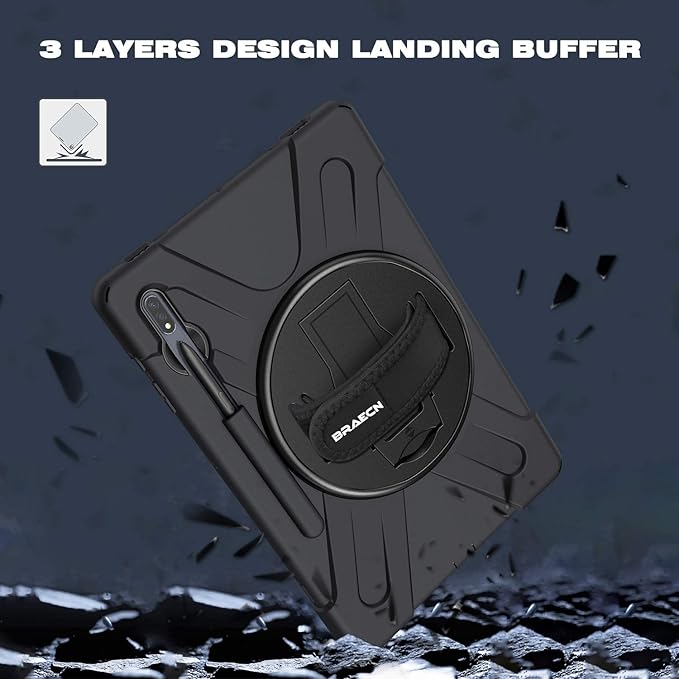 - 360 Rotating Stand and Hand Strap: The Galaxy Tab S10 Plus 2024/S9 Plus 12.4-inch Shockproof Case comes with 360 rotating stand on the back for multi-angle viewing and an adjustable strap that provides more flexibility and comfort when using the S10+/S9 FE+ Plus tablets at work, school, travel or play.
