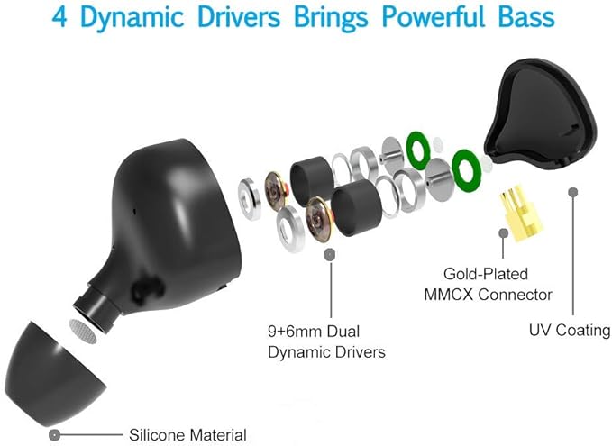 - DETACHABLE CABLE with MMCX CONNECTOR: This ear monitor is engineered for real-world reliability with detachable, replaceable cables and a sweat-resistant design. Gold-plated MMCX 1/8" connector has a lock-snap mechanism allowing 360-degree rotation for a comfortable fit which makes cable replacement or upgrade easily. You can freely change your cable type by adding your own cable. Any cable with MMCX connector will work!