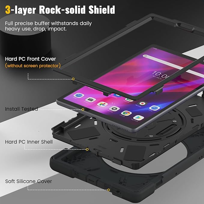 - ❤ CHILDPROOF, HEAVY-DUTY, DROP PROOF, RUGGED TABLET PROTECTOR - 3-Layer Protective Case, a durable rubberized silicon body offers ultimate shockproof protection, hard plastic shell frame protects your tablet from being scratching. 👉𝗜𝗻𝗻𝗼𝘃𝗮𝘁𝗶𝘃𝗲 𝗗𝗲𝘀𝗶𝗴𝗻, thickened four corners, protect your tablet even if it falls from the second floor. DreamerX Lenovo Tab M10 Plus FHD 10.3 / K10 Tablet Cover gives your tablet the indestructible armor body it deserves. Raised bezel edges to protect the screen from being scratched and shattered