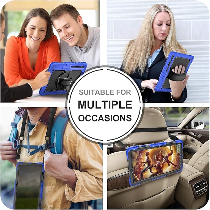- [Adjustable Shoulder Strap]: The heavy duty tablet case for Samsung Tab S8 Plus/ S7 FE/ S7 Plus comes with a adjustable detachable shoulder strap, so that you can carry your tablet on neck or shoulder like a bag, or sling it on car head rest. It's ideal for carrying on travel, at work, in school or outdoors.