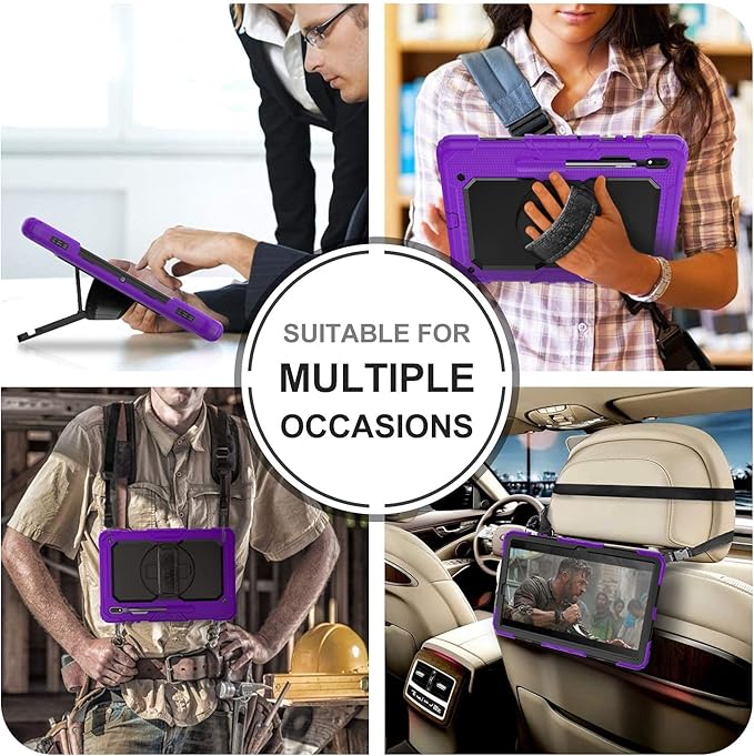 - [Adjustable Shoulder Strap]: The heavy duty tablet case for Samsung Tab S8 Plus/ S7 FE/ S7 Plus comes with a adjustable detachable shoulder strap, so that you can carry your tablet on neck or shoulder like a bag, or sling it on car head rest. It's ideal for carrying on travel, at work, in school or outdoors.