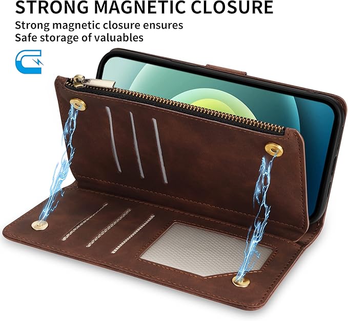 ZZXX for iPhone 12 Mini Wallet Case with Card Slot Premium Soft PU Leather Zipper Flip Folio Wallet with Wrist Strap Kickstand Protective for iPhone 12 Mini Case Wallet(Coffee 5.4 inch)