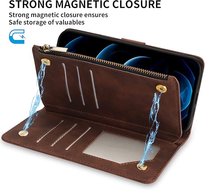 ZZXX for iPhone 12 Pro Max Wallet Case with Card Slot Premium Soft PU Leather Zipper Flip Folio Wallet with Wrist Strap Kickstand Protective for iPhone 12 Pro Max Case Wallet(Coffee 6.7 inch)