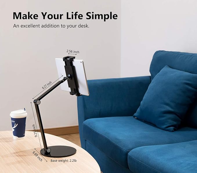 - 【Never Fall Off】 Inifispce Tablet Stand Holder has been upgraded from three aspects, strengthen elastic silica gel clamp, sturdy and thickened all-metal long arm rod, high-quality aluminum alloy round base and thickened EVA pad, which makes it super stable to support all Tablets.