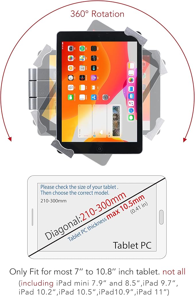 - For most 7-10.8 inch tablets but not all (Diagonal length 210-300 mm & thickness is less than 10.5 mm). include And Use for iPad Air 10.9",iPad 10.5",iPad 11", iPad 10.2" Gen.7 & Gen.8,iPad 9.7" Gen.5 & Gen.6,iPad Air 9.7"Gen.1 & Gen.2, iPad 9.7"Gen.2,Gen.3,& Gen.4.mini ipad 7.9" Gen.1-5., Galaxy Tab.& Other brand.