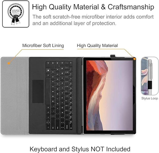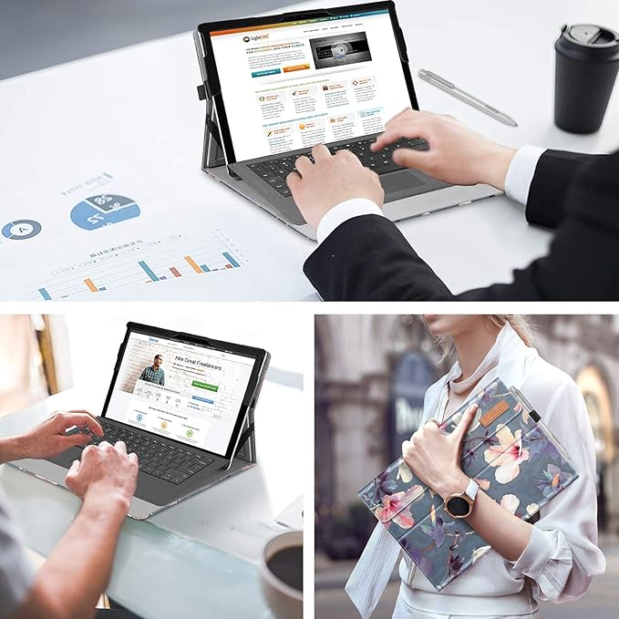 - Designed for New Microsoft Surface Pro 7 + (2021) / Surface Pro 7 (2019) / Surface Pro 6 (2018) / Surface Pro 5th Gen (2017) / Surface Pro 4 / Surface Pro 3 / Surface Pro LTE 12.3 inch tablet. Works with or without the surface pro type cover keyboard (keyboard not included). Not fit for Microsoft Surface Pro 11 / Pro 10 / Pro 9 / Pro 8 / Pro X, Surface Go or any other tablets.
