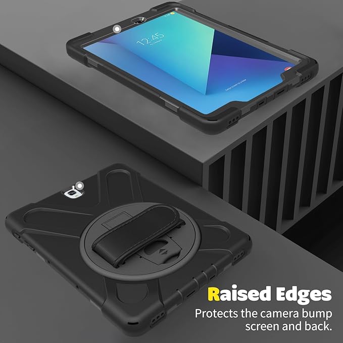 - DreamerX GALAXY TAB S3 9.7 SHOCKPROOF CASE - 360-degree rotating sturdy kickstand supports multi-angle viewing for watching videos, conferences, or typing. With a 360-degree rotatable and adjustable hand strap, you can adjust the tightness of the hand strap to the most comfortable position. Ideal for toddlers, children, office workers, students, teachers, engineers, waiters, nurses, etc