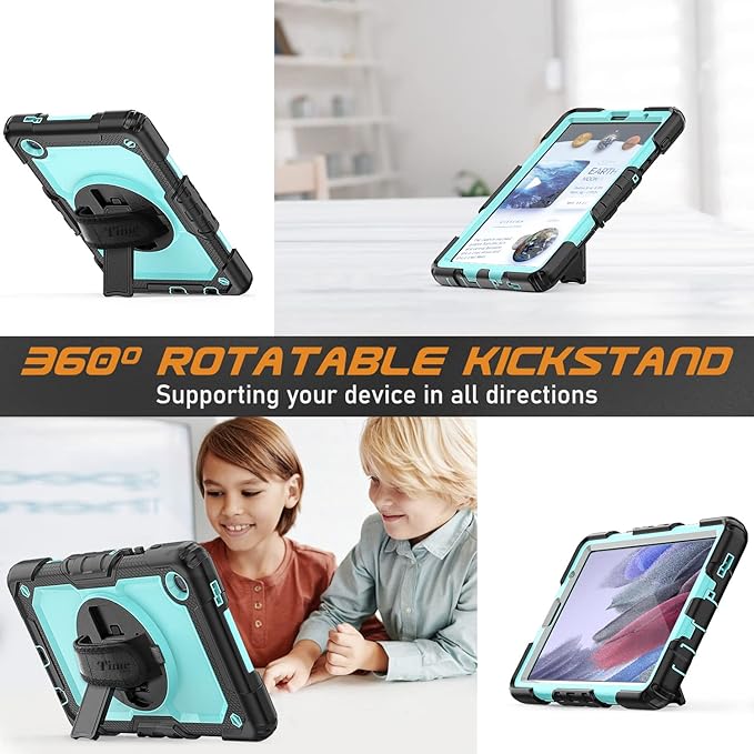 - [Swivel Kickstand] Built-in 360 degree rotating turntable and foldable kickstand, allows you to adjust the stand to achieve different angles and free your hands. The Samsung Tab A7 Lite case is designed with the S-pen holder, perfect for storing and carrying your pen. (Pen is NOT included)