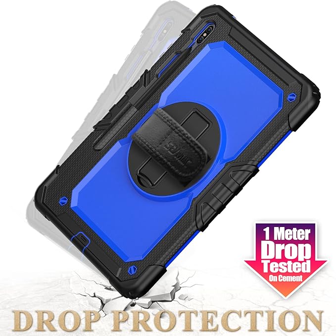 SEYMAC stock Case for Samsung Galaxy Tab S7 FE / S8 Plus 5G Case 12.4'' with Screen Protector Pencil Holder [360 Rotating Hand Strap] &Stand, Drop-Proof, Blue/Black