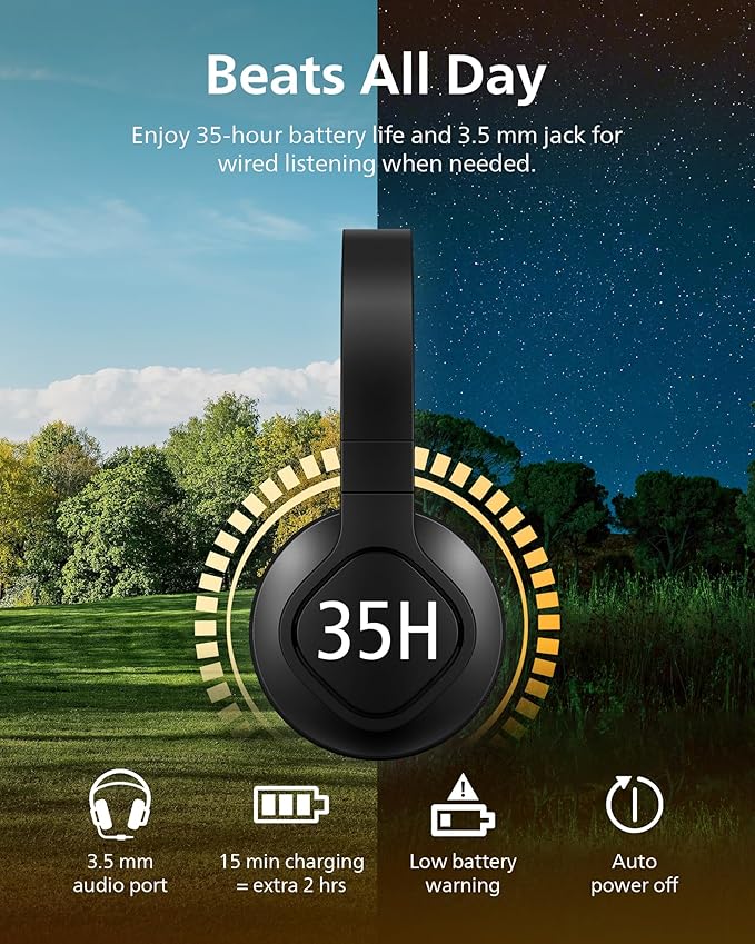 - HERE COMES THE BASS: These wireless over-ear headphones give you deeper bass! Powerful 40mm drivers bring out the best in your favourite tracks so you can hear every note. And the closed-back design ensures your tunes stay yours!