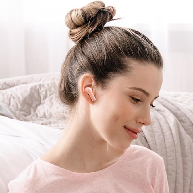 AIHOOR Wireless Earbuds for Music and Sports, Bluetooth 5.3 in-Ear Headphones with Extra Bass Built-in Mic Touch Control 30hr Battery Earphones, Waterproof (Pink)