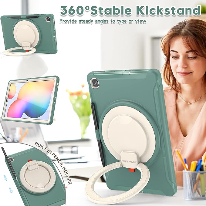 BATYUE Case for Samsung Galaxy Tab S6 Lite 10.4 Inch 2024/2022/2020 (SM-P610/P613/P615/P619/P620/P625/P627), Protective Rugged Cover with Stand, for Kids, Boys, Girls, Emerald Green