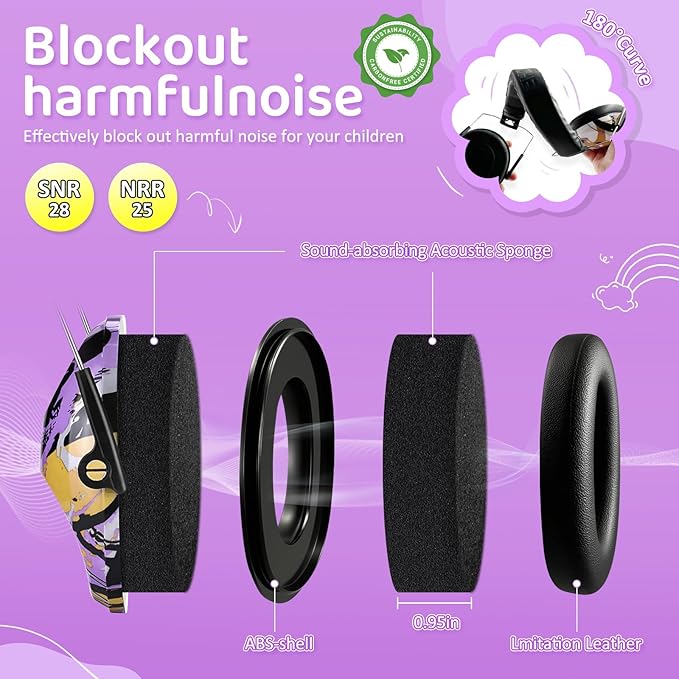 - [Supreme Comfort & Durability] Crafted with premium, skin-friendly materials, our 360° rotatable cups and ultra-soft ear cushions fully encompass your child's ears, providing long-lasting comfort. The fully padded headband offers maximum comfort, stability, and durability, reinforcing internal construction and ensuring a safe and cozy fit for kids' heads