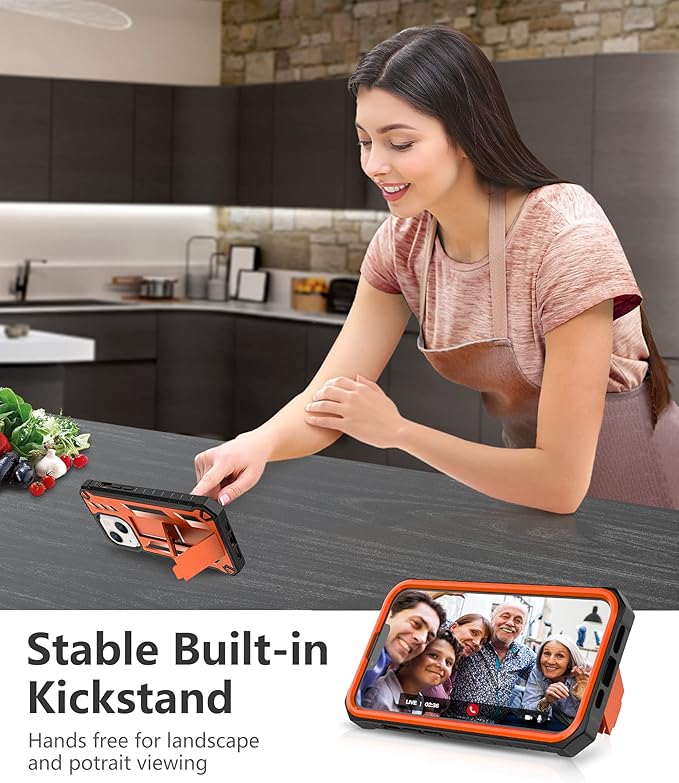 - Built-In Kickstand: This iPhone 13/14/16e Case with stand works perfectly both in vertical and horizontal positions. Convenient for reading,watching movies,playing games,browsing the web and face-to-face chatting with friends.Provides hands-free portrait and landscape viewing angles