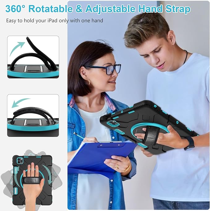- ADJUSTABLE HAND STRAP + DETACHABLE SHOULDER STRAP: The adjustable hand strap offers easily grip and comfortable hold, it is a must feature when you show your iPad to others. The detachable and adjustable shoulder strap can help you carry your iPad more securely during hiking, traveling other outdoor activities.That can also be used to attach your ipad to the car seat