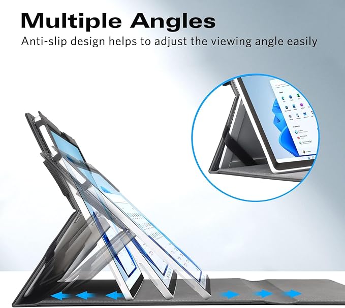 - MULTIPLE ANGLES: The three-gear anti-slip groove allows you to adjust the Surface Pro device to Multiple Angles securely. So you can enjoy your contents hands-free, enabling you indulge in working without any tiring feeling.