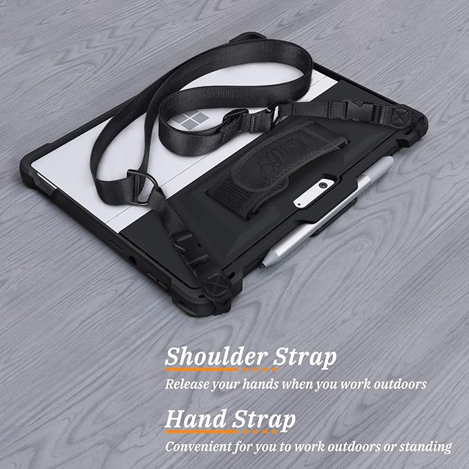 Microsoft Surface Pro 11/10/9 Case with Hand & Shoulder Strap, Pen Holder, Compatible with Type Cover Keyboard Rugged Protective Cover