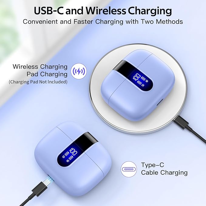 - Wireless Charging and IPX5 Waterproof: The charging case of these bluetooth earbuds support wireless charging and USB C cable charging. These wireless headphones are rating at IPX5 waterproof, the nano-coating on earbuds surface can prevent water and sweat from penetrating, which can use as sport wireless headsets. You can listen to the music while running, working, reading, sleeping, meeting, etc