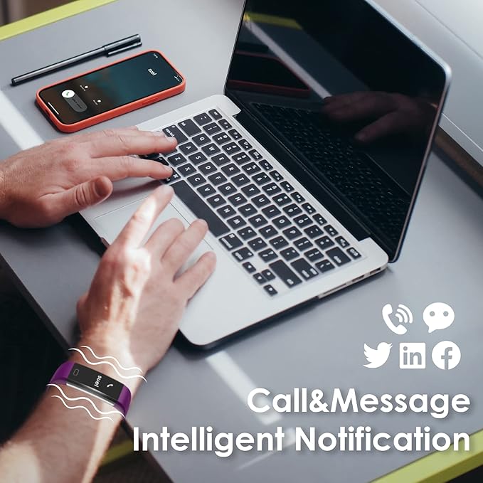 - 【Smart Notifications & Bluetooth Data Sync】 – View calls, texts, and app notifications directly on the tracker so you never miss important updates. Compatible with Android 5.0+ and iOS 9.0+ (not compatible with PC, iPad, or tablet). Under normal use, Bluetooth does not stay connected continuously; connect only when syncing data, while daily data can be viewed on the watch.
