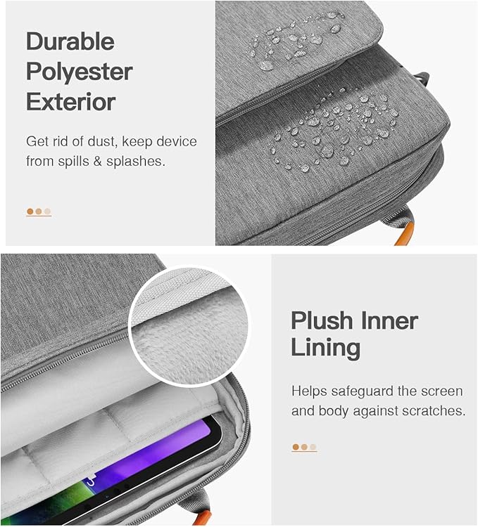 - PREMIUM MATERIAL: Polyester exterior features wear-resistant against dust and splash. Thick sponge padding protects your tablet and items from shocks, collision and being squeezed. Soft inner lining prevents scratches. High-end material gives your device a superior protection.